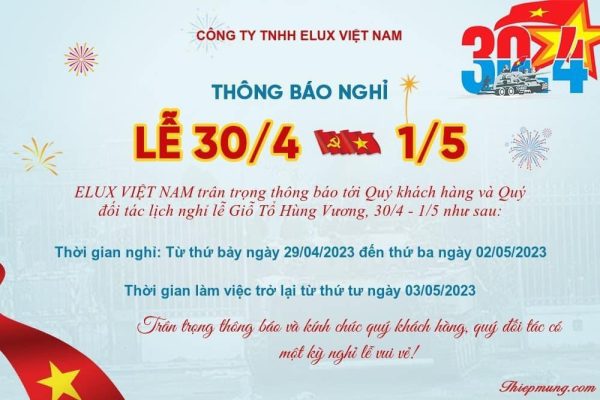 Thang máy ELUX VIỆT NAM xin trân trọng thông báo đến Quý khách hàng, Quý đối tác và cán bộ công nhân viên lịch nghỉ lễ Giỗ Tổ Hùng Vương,...